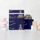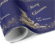 This festive personalized navy blue and gold Merry Christmas wrapping paper has a gold tone Christmas or Holiday tree with ribbons and star dust on it. If you need any matching items, or if you need assistance or changes, please email niteowlstudio@gmail.com.