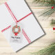 This Christmas gift tag is decorated with a watercolor wreath of cookies, festive foliage, and a red ribbon.