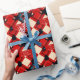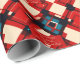 This Christmas wrapping paper features a bold and modern geometric design with a mix of red, cream, black, and teal shapes. The pattern is created by overlapping squares and diamonds in varying shades, forming a striking and intricate look that adds a contemporary twist to traditional holiday wrapping. The addition of personalized text, such as “Merry Christmas to [Name] from [Sender],” is elegantly printed in a stylish cursive font on the paper. This customization option allows for a heartfelt touch, making each gift distinct and thoughtfully prepared. Perfect for those who appreciate a unique, artistic style in their holiday decor. The text or message which is on the wrapping paper can be replaced and personalized. This aspect makes the wrapping paper and your personal message suitable for many occasions, including Christmas.