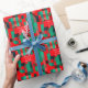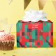 This Christmas wrapping paper features an abstract, modern design in vibrant red and green. The pattern consists of various shapes and lines, creating a playful, festive look that departs from traditional holiday themes. There are patches of plaid elements, adding a subtle, classic touch to the bold and contemporary style. The text on the paper reads “Merry Christmas To [Recipient’s Name] from [Sender’s Name],” in a cursive white font against red blocks within the pattern. This message can be customized with a message with names to make each gift feel more personal. The text or message which is on the wrapping paper can be replaced. This aspect makes the wrapping paper and your personal message suitable for many occasions, including Christmas.