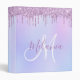 Personalized Metallic Purple Drip Lavender Pour 3 Ring Binder