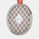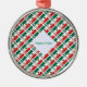 Round metal ornament featuring a tiled Mexican flag pattern with MEXICO repeated below each flag, plus a white fractal name patch with your custom name in flag colors. Perfect Christmas stocking stuffer, Mexico family reunions, holidays, Cinco de Mayo, and cultural pride all year.