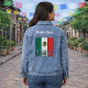 Women’s denim jacket featuring a Mexico flag design on the back with your custom name in bold white text above it for a clean, high‑contrast look. Perfect for Mexico family reunions, Cinco de Mayo, Mexican Independence Day Sept 16, cultural pride, travel, festivals, and everyday wear.