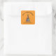 This orange sticker is decorated with a Mid-century modern Christmas tree giving it a retro feel.