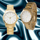 Add personalized details to this attractive gold themed watch for women.