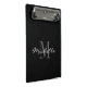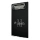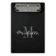 Personalized mini clipboard with elegant monogram. Custom Christmas or Birthday gift for teacher, co worker, sports coach, personal trainer, fitness instructor, friend, mom, dad, boss, corporate employee, office worker, hair stylist etc. Script typography design with name and initial letter. Black and white or custom colors. Double sided print. Handy for making notes, recipes, to do lists, work lists, wedding plans, keeping sport score and more.