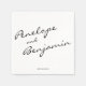 This elegant wedding napkin features a chic black handwritten script with the couple’s names and a small date detail in minimalist serif type. The clean white background keeps the design timeless and versatile—perfect for receptions, cocktail hours, or engagement parties. A refined detail for modern, black-and-white, or romantic wedding themes.
