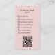 Stand out with this chic and customizable bakery business card featuring a soft pink background, which you can easily change to match your brand. Add your own photo on the front to showcase your delicious treats, and personalize the details to fit your business. The back of the card includes replaceable icons and a scannable QR code, perfect for sharing your menu, services, or contact info with a quick scan. Ideal for bakers, pastry chefs, and bakery owners who want to make a sweet and professional impression.