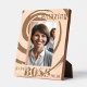 The design features a vibrant and modern abstract swirl artwork, complemented by the word "Boss" and up to three customizable text fields that currently read "Amazing" "Best Ever" and You Are" adding a personal touch to the stylish design. This cheerful piece brings a fresh and elegant vibe to any space. The engraved personalization on this etched wooden photo frame creates a uniquely chic presentation for your favorite photo of the exceptional boss in your life!