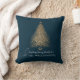 add your family name to this beautiful dark blue christmas throw cushionfeaturing a festive gold tree in gold and text saying chritmas time is family time.