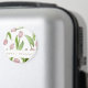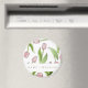 The product design features a pattern of pink tulip flowers. This botanical illustration with personalized text makes modern and unique round magnets - Gift idea for birthday, Easter, Mother’s Day, wedding favors, and more!