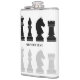 Classic black and white chess flask for chess lovers, featuring chess figures in a geometric pattern. Modern chess pieces design