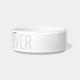 Black and white cat bowl with gray "BEST CAT EVER" and your cat's name customized in a chic and elegant calligraphy script font text overlay. Enter any personalized text you like for the background and top layer of text to create your own personalized modern and minimal and fun ceramic pet food or water bowl. See our collection of coordinating bowls and get a set!