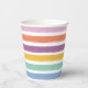 Personalized Modern Colorful Easter Egg Hunt Party Paper Cups feature a white center space framed by a vibrant striped background in cheerful Easter colors like yellow, green, pink, and purple. The center showcases bold "Sipping & Hunting" text, along with "with the [name]" in black, written in modern and elegant fonts.