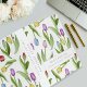 The product design features a pattern of colorful tulip flowers in purple, red, pink, blue, and yellow. This elegant botanical illustration with personalized text makes a modern and unique 3 ring binder.