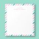 This Personalized Cute Striped Notepad showcases a delightful diagonal striped pattern in lively pink, green mint, green and orange hues. Perfect for jotting down notes, ideas, or reminders, this notepad adds a splash of fun to your everyday tasks. Customize it with your name, leave the "a note from" or change it for a personal touch, making it ideal for a teacher gift.