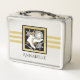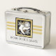 This is a standard metal lunchbox that appears to work just fine. We designed this box ourselves with an uploaded photo and custom text on the front and back. It looks absolutely beautiful except the front of the lunchbox is not centered like it shows in the photo. The print borders don't align with the inset flat part of the box where the preview photo online showed it perfectly centered in there. The back looks nice and centered though.