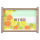 This design features a pattern of summer citrus fruit slices: orange, lemon, and lime. The original food illustration with personalized text makes a modern and unique serving tray.