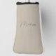 Elevate your golf style with this personalized beige golf head cover, featuring custom initials and name in a sleek modern script. Made with durable fabric to protect your clubs, this head cover combines functionality with a personalized touch, making it a perfect gift for golf enthusiasts. The neutral beige color and contemporary monogram design ensure it complements any golf bag, adding a unique flair to your gear. Ideal for golfers looking to add a sophisticated, custom element to their equipment.