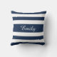 Personalized Modern Navy Blue Stripes Throw Pillow