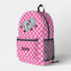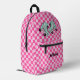 Personalized Modern Pink Checkered Roller Skate Printed Backpack