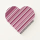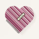 A unique heart-shaped spiral notebook featuring personalized pink mauve vertical stripes. Perfect for journaling, notes, or gifting.