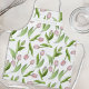 The product design features a pattern of pink tulip flowers. This botanical illustration with personalized text makes a modern chic and unique apron - Gift idea for Easter, Mother’s Day, and more!