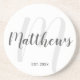 featuring family name in grey modern script font style and monogram in light grey modern script font style as background