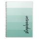 This trendy modern design features five color block stripes in gradient tints from light to medium aqua. Personalize it with your name in vertical black signature handwriting script.
