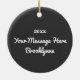 Lightweight, smooth, pure white ornament with nice sheen. Perfect size to be seen from across the room ... and to attract closer inspection! Price was great for ordering enough for the whole family! Clear, bold black design just as requested. Matches the order exactly. Just so nice!