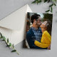 Plain white envelopes are included with paper invitations and will come to fit the invitation size you select. If you don’t need the envelopes, you may choose to not receive them by selecting the dropdown below "Envelopes" and choosing "None." If you’d like to have a design on your envelopes, you can browse all of these available envelopes to find the design that complements your Personalized Modern White And Black Photo Wedding Invitation.