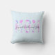 Personalized Mom throw pillow with children’s names. All you need to do is edit names to names of your choosing. Lovely pink floral design fills the word MOM to add an extra touch. Background a pale blue.