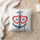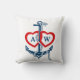 Nautical anchor throw pillow with personalized monograms in red hearts. Red, blue and white. The back side is blue and you can personalize the text there too, right now it says: "together...forever".