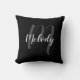 A Personalized Monogram and Name pillow featuring personalized name in white modern script font style and monogram in black modern script font style on a black background. Perfect as a holiday gift, family reunion favors, housewarming gift, thank you gift for bridesmaids, or any of your home decor needs.