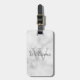 features personalized name in grey script font style and monogram in light grey serif font style as background, on white marble look background.