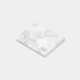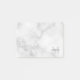 features personalized name in grey and monogram in light grey as background, in classic serif font style, on white marble background.