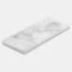 features personalized name in grey and monogram in light grey as background, in classic serif font style, on white marble background.
