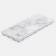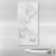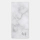 features personalized name in grey and monogram in light grey as background, in classic serif font style, on white marble background.