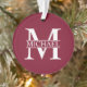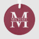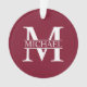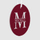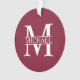 featuring personalized white monogram in classic serif font style with box of name in the middle of monogram on burgundy red background.