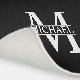 featuring personalized white monogram in classic serif font style with box of name in the middle of monogram on black background.