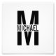 featuring personalized monogram in black bold modern sans serif font style with box of name in the middle of monogram.