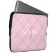 Personalized Monogram and Name Pink Plaid Gingham Laptop Sleeve