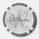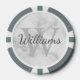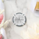features personalized name in grey script font style and monogram in light grey serif font style as background, on white marble background.