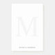 features personalized name in grey and monogram in light grey as background, in classic serif font style,