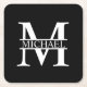 featuring personalized monogram in classic serif font style with box of name in the middle of monogram.
