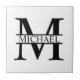 featuring personalized monogram in classic serif font style with box of name in the middle of monogram.