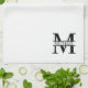 featuring personalized monogram in classic serif font style with box of name in the middle of monogram.