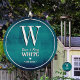 A pretty addition to your garden space with your monogram, names & date established on a rich, aqua blue background on this lovely wind chime.