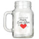 Perfect for a rustic country wedding reception. Arrows, red hearts and the bride and grooms monogrammed initials with wedding date. "And they Lived Happily Ever After" is on the back. This adorable country style mason jar will make a cherished keepsake for your guests. To see more great wedding gifts- Please visit my store "The Hungarican Princess" at www.zazzle.com/hungaricanprincess*. Look in my "Wedding" department category. Congratulations!