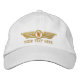 A custom hat detailed embroidered Personalized Monogram Badge Pilot Wings baseball cap on for any aviation, geocaching, exploration enthusiast. For the air pilot you love or the one in you. Edit the 1 letter or number monogram field to suit what you want; it is now set as "W". You can also email us with your special request or for help with this embroidery as well.